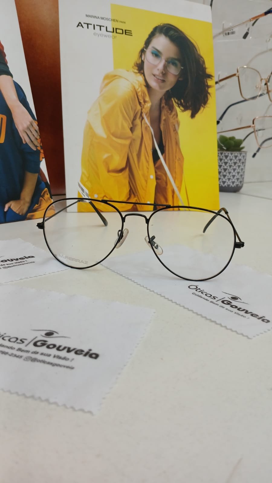 Armação para lentes de grau M.Ferraz, toda no metal, na cor preta, resistente, com plaquetas siliconadas no nasal, estilo aviador.
