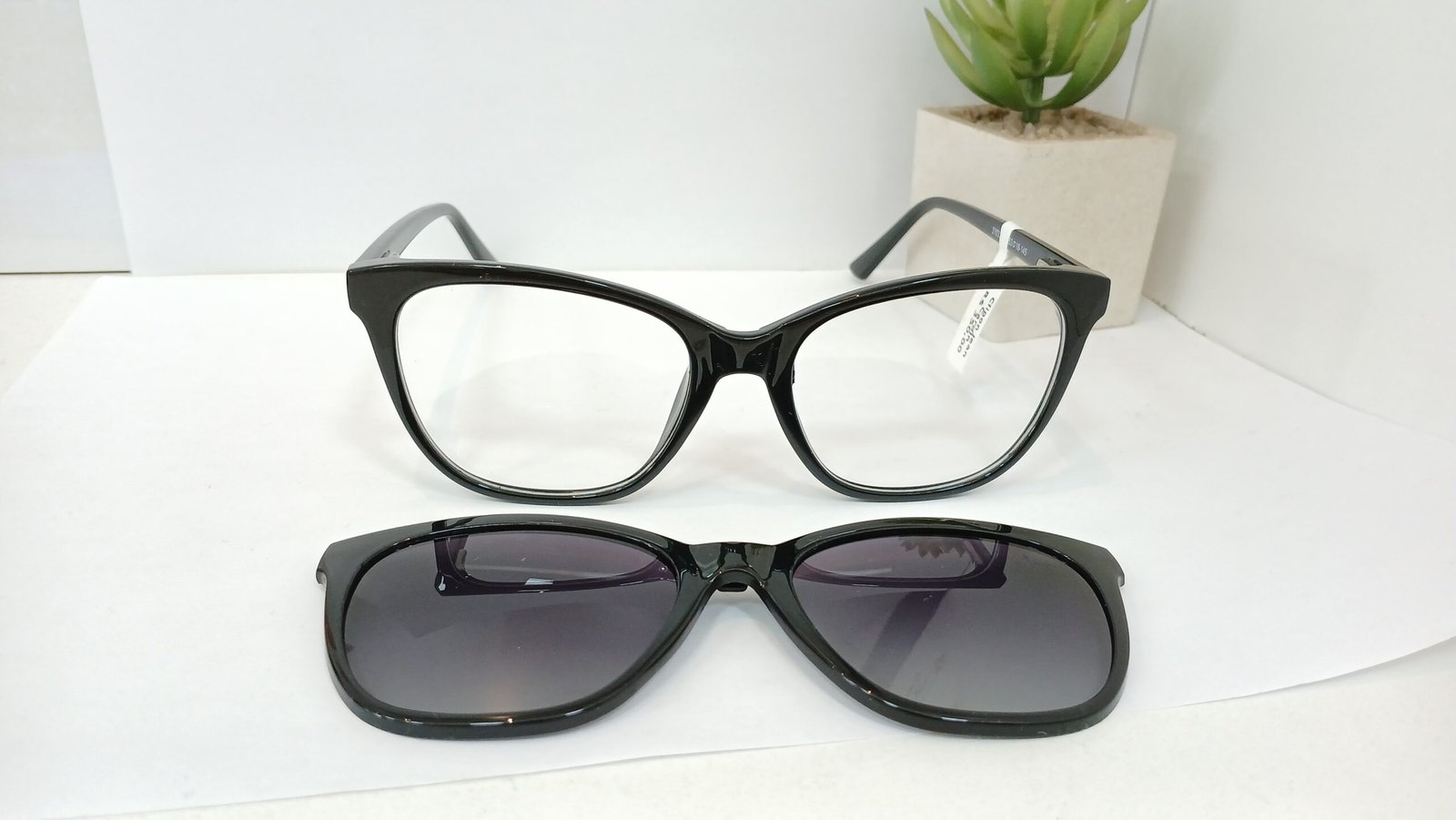 Óculos Clip on, modelo 2 em 1, armação para lentes de grau toda em acetato preta, com lentes de sol que se unem por um imã. Modelo perfeito para você ver com seu grau também com Óculos de sol!